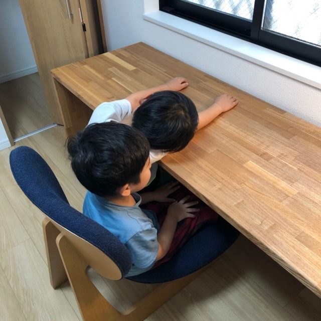 作業するのにちょうど良い高さの机がなかったので、机は特注しました。
