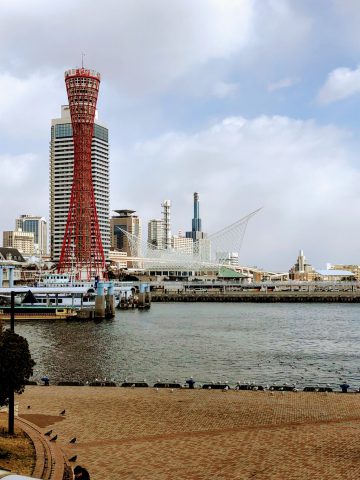 観光地のエリアということもあり、外から観た「神戸」っぽい場所かもしれません。(ちなみに下の写真は、ハーバーランドから撮ったもの。ポートタワーとカワサキワールドが入る海洋博物館、そして海・・・ね、っぽいですよね!)