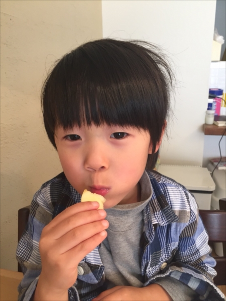 戴いたケーキとリンゴをむさぼる、我が子たち・・・