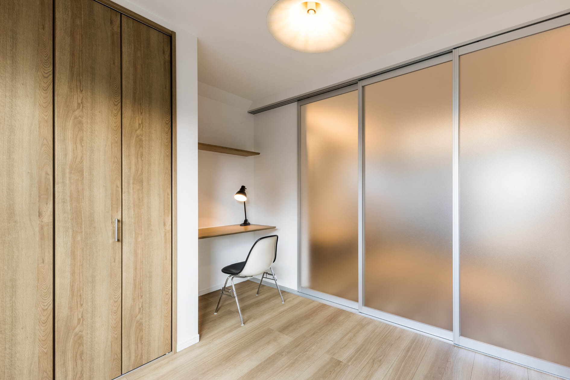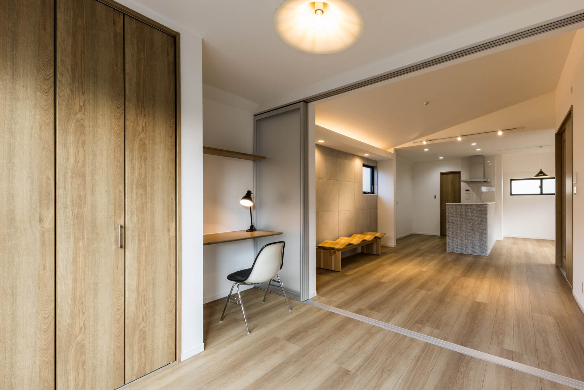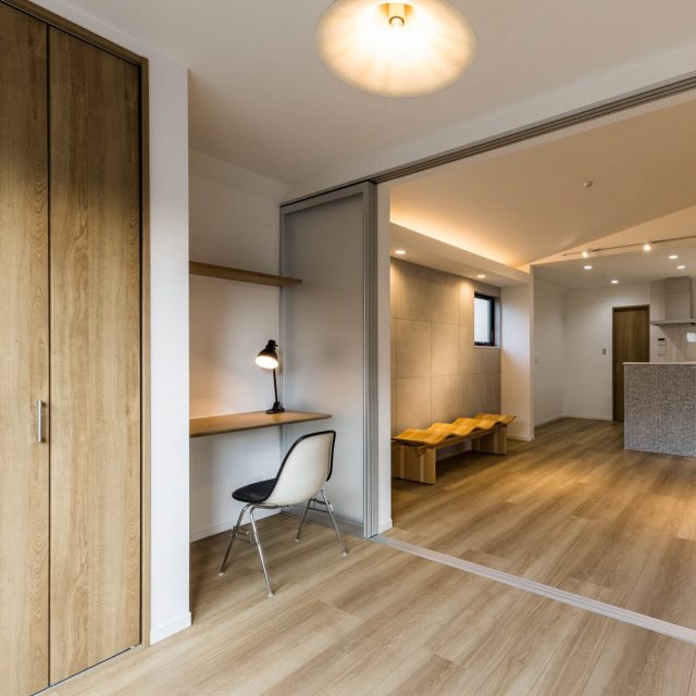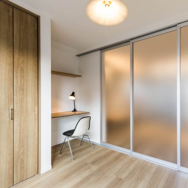 LDKに続く洋室には、在宅勤務や子供の勉強に使えるカウンターと床暖房。