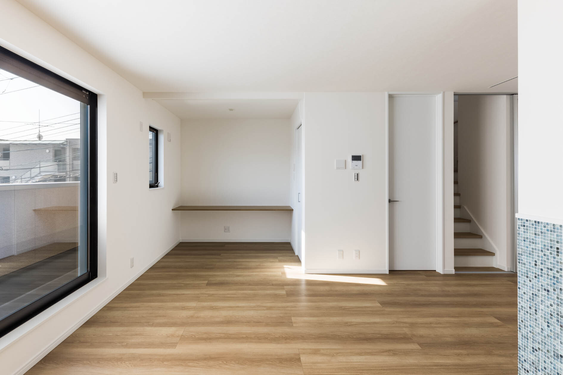 導線の都合上できてしまう空間は、無駄に広く残すのではなく、収納を造り、片付くスペースにした。