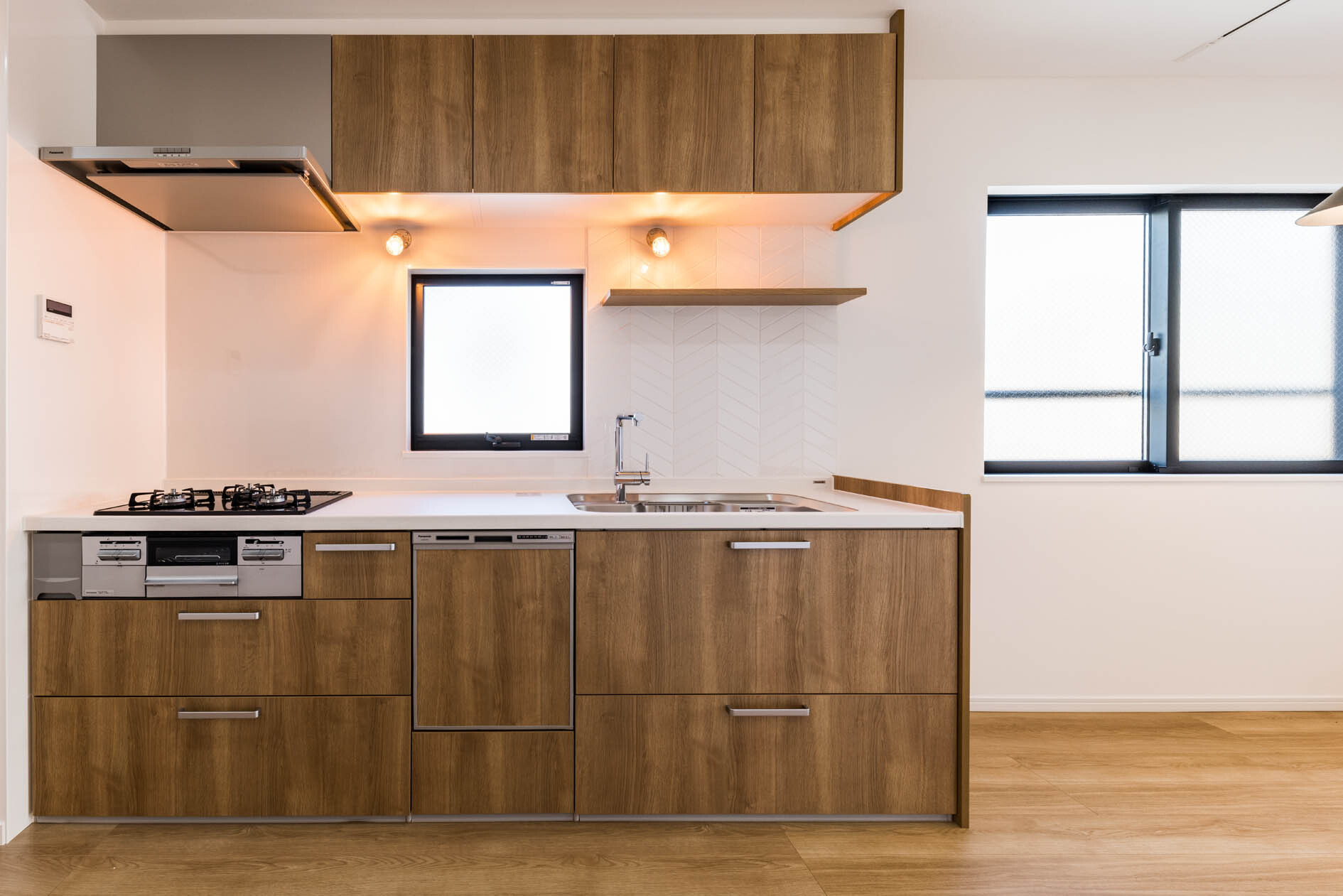 洗濯機スペースの上には、ガス式乾燥機も置けるようにしました。