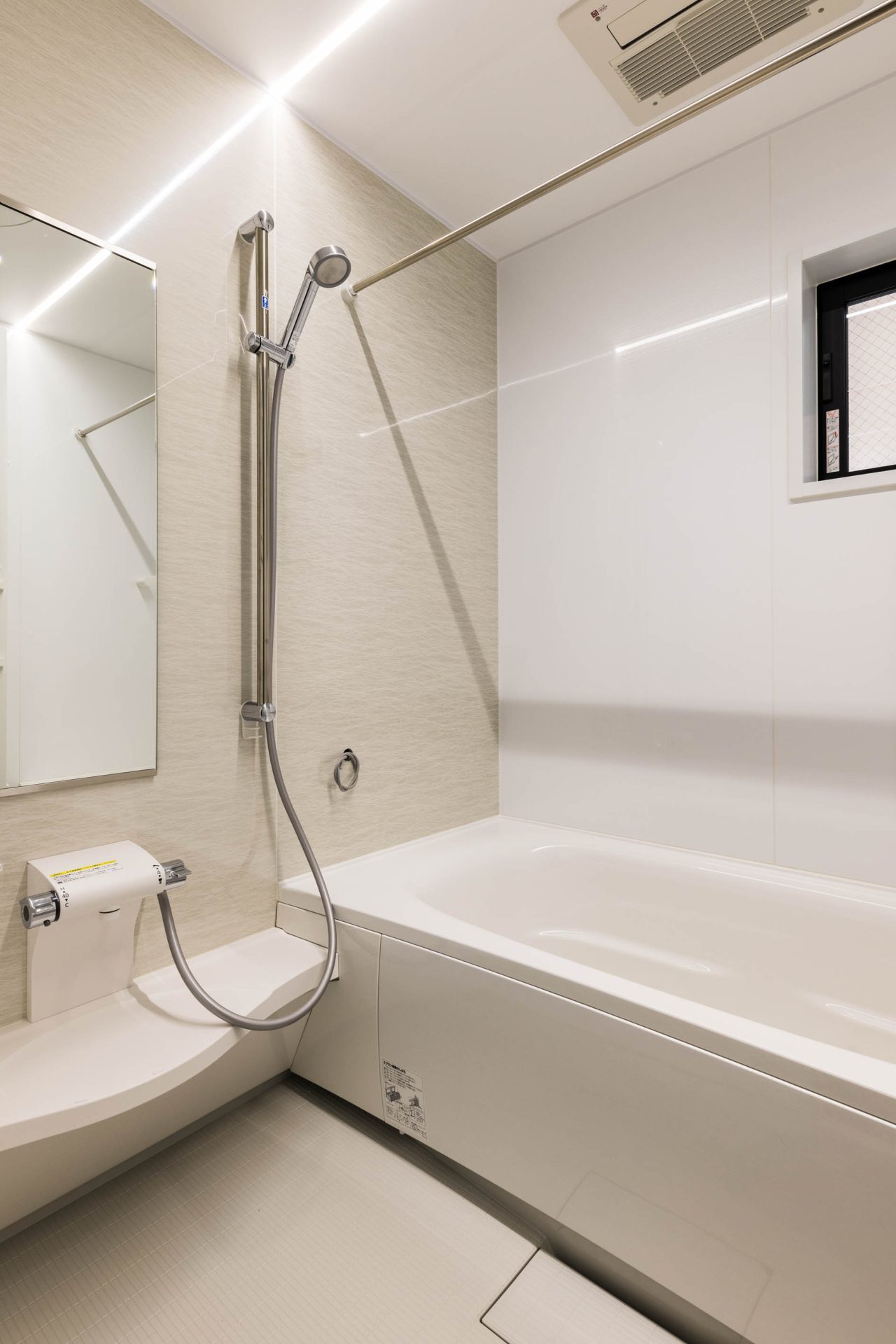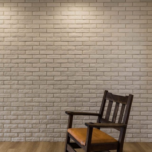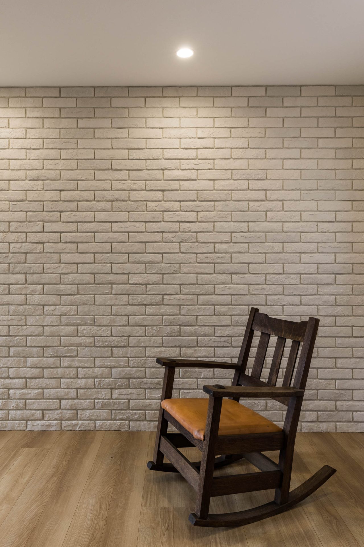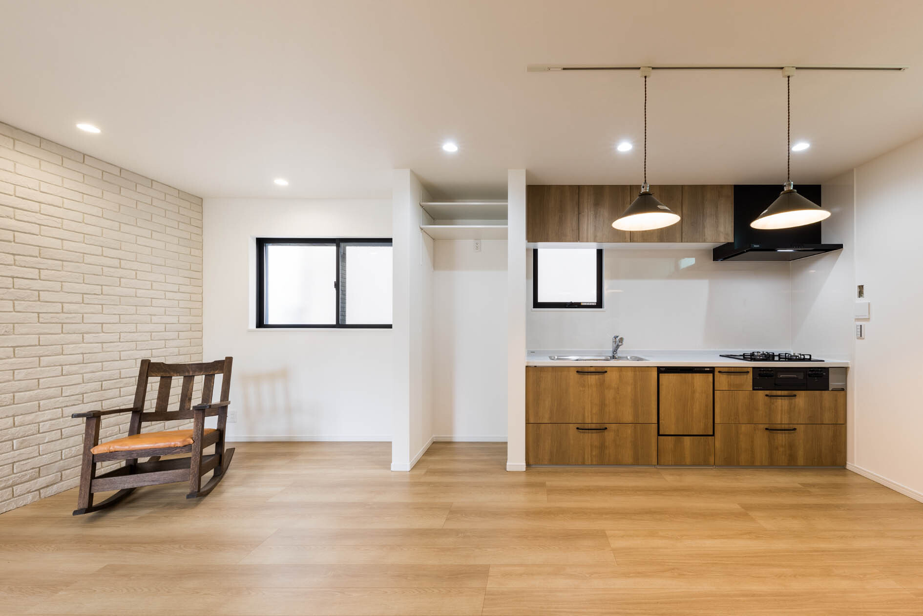 リビングの大きな面には、白レンガタイルで圧迫感を出さずにアクセントを。