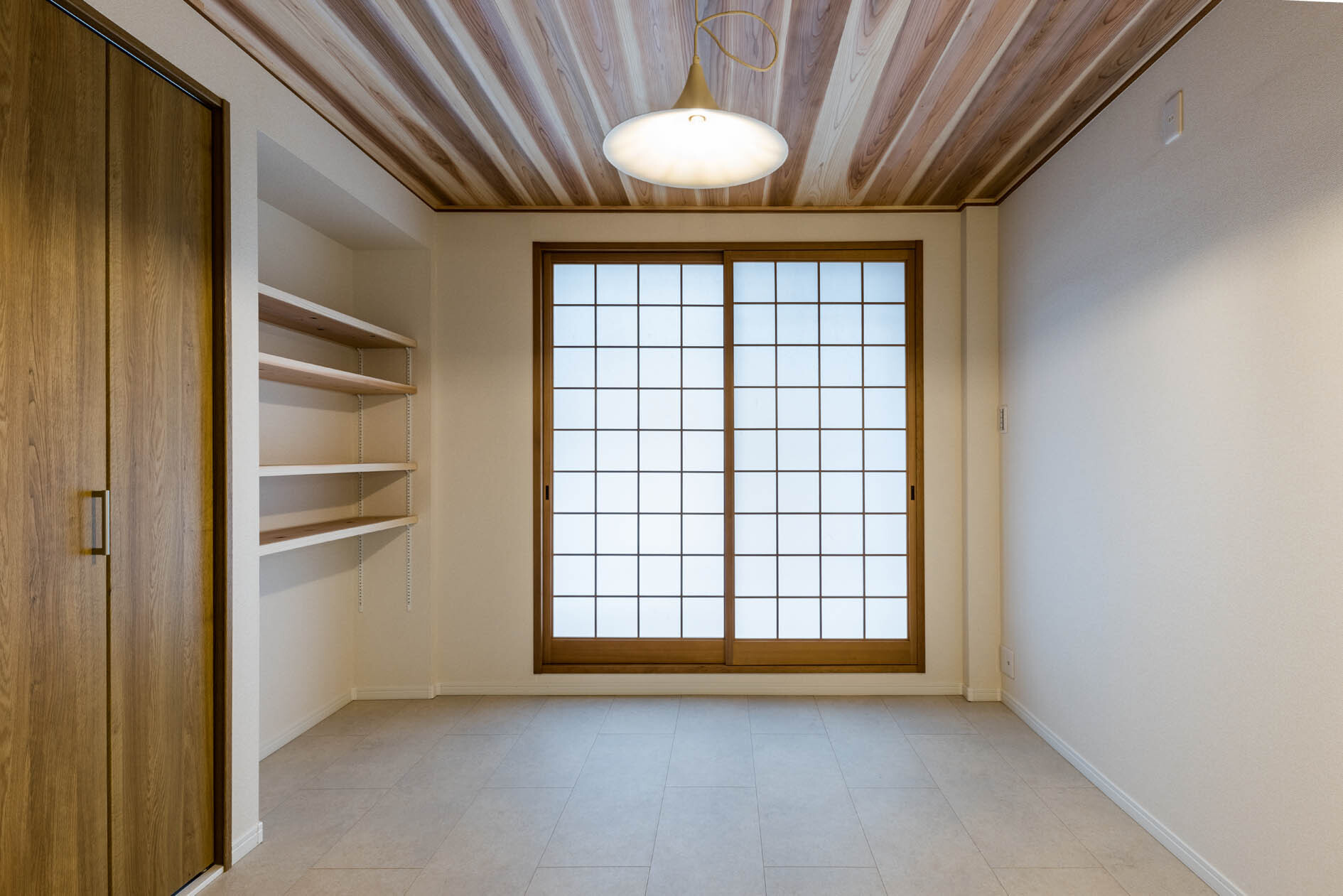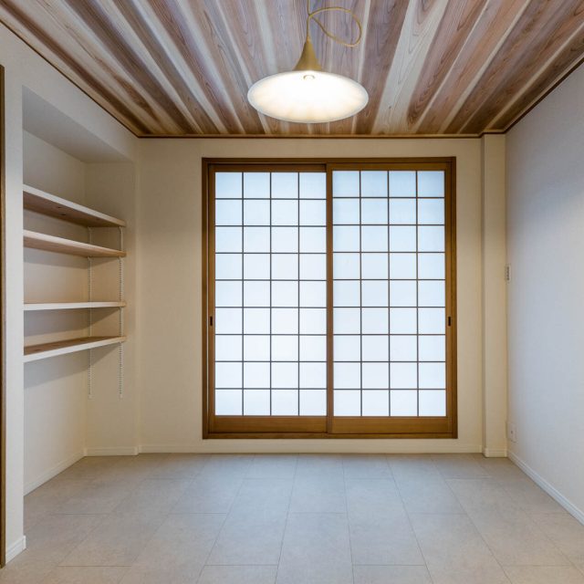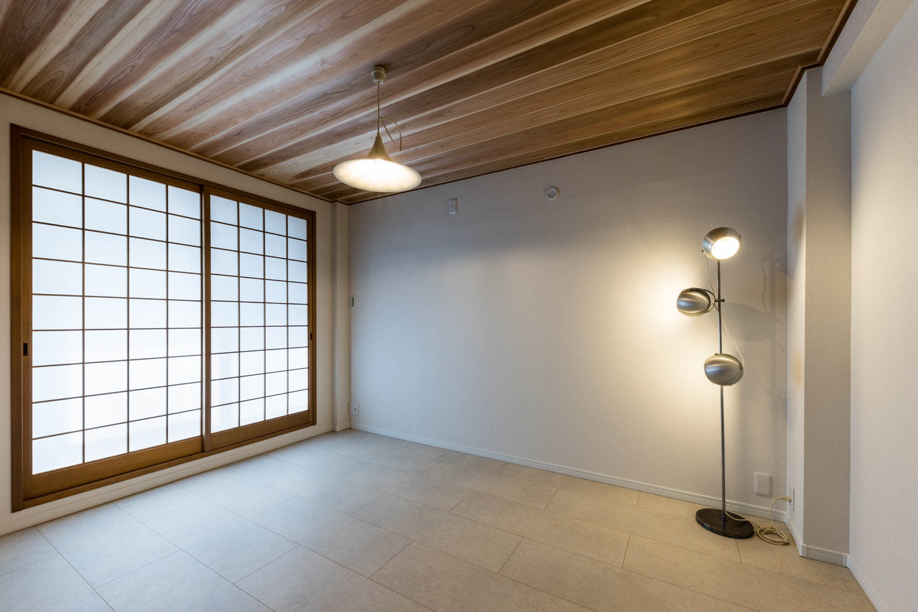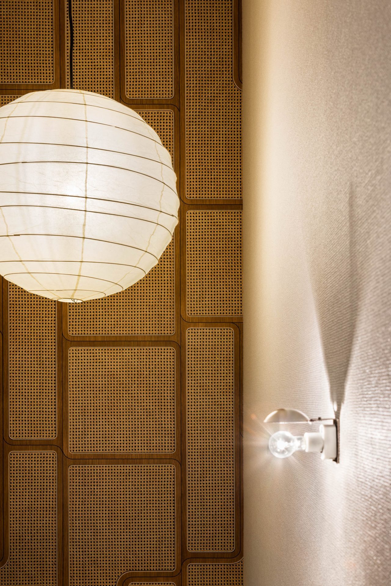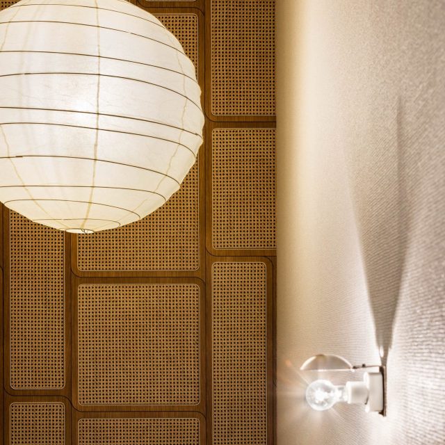 ここにはオランダ製のラタンデザインのクロスを貼り、