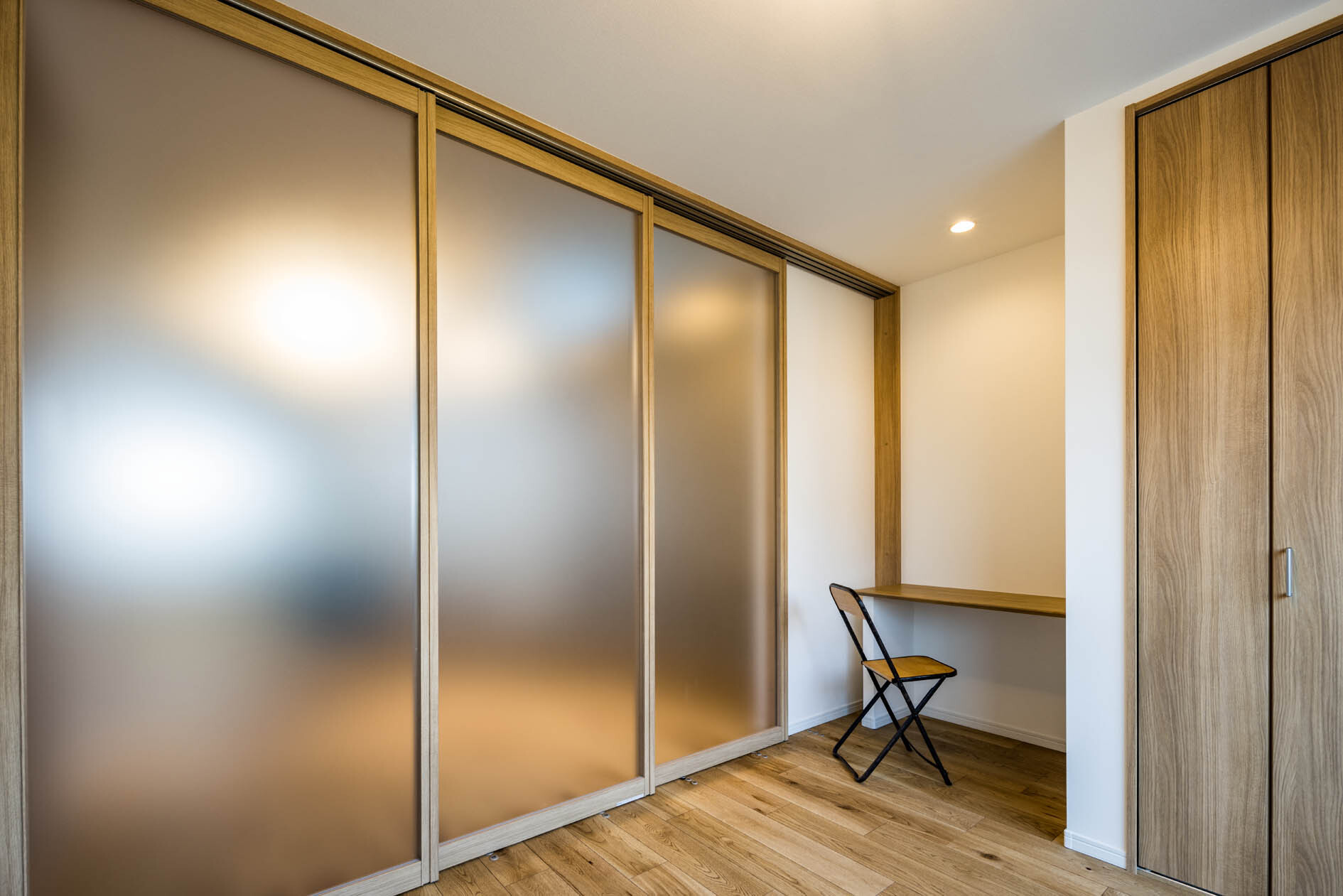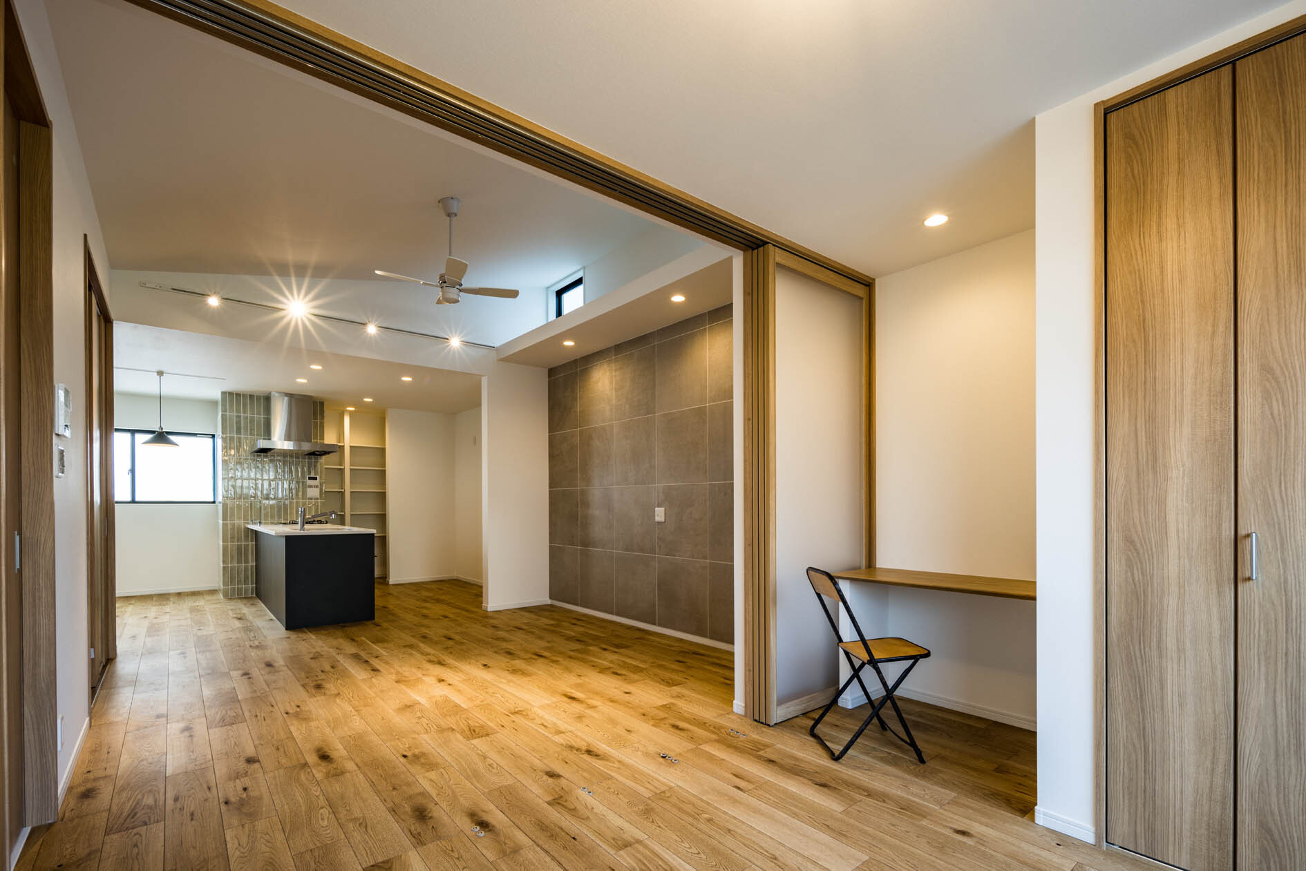リビング続きの洋室は半透明の引き戸で緩やかに間仕切ることができ、様々な使い方が出来ます。