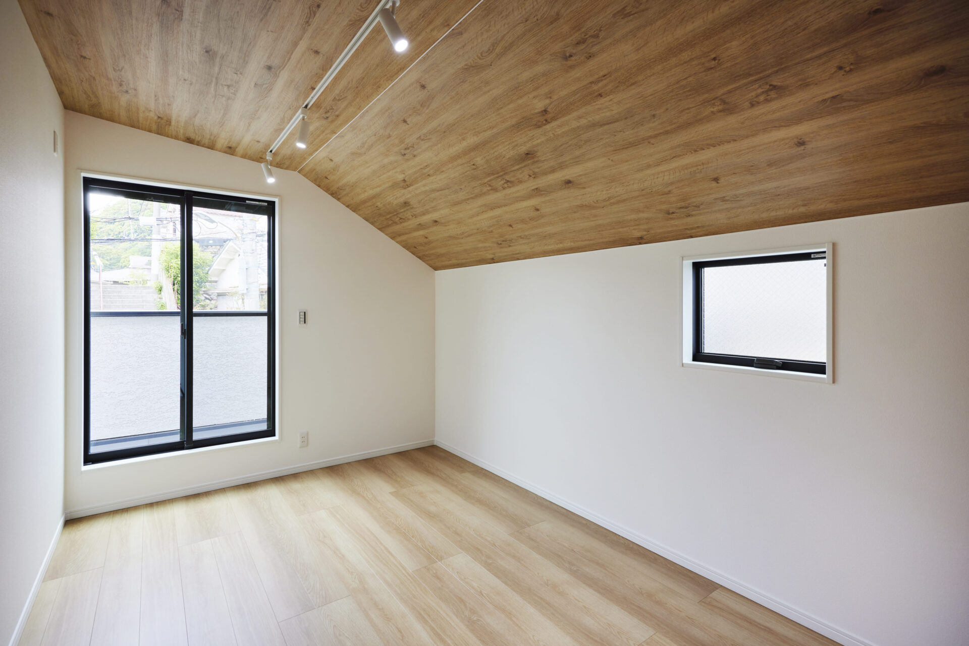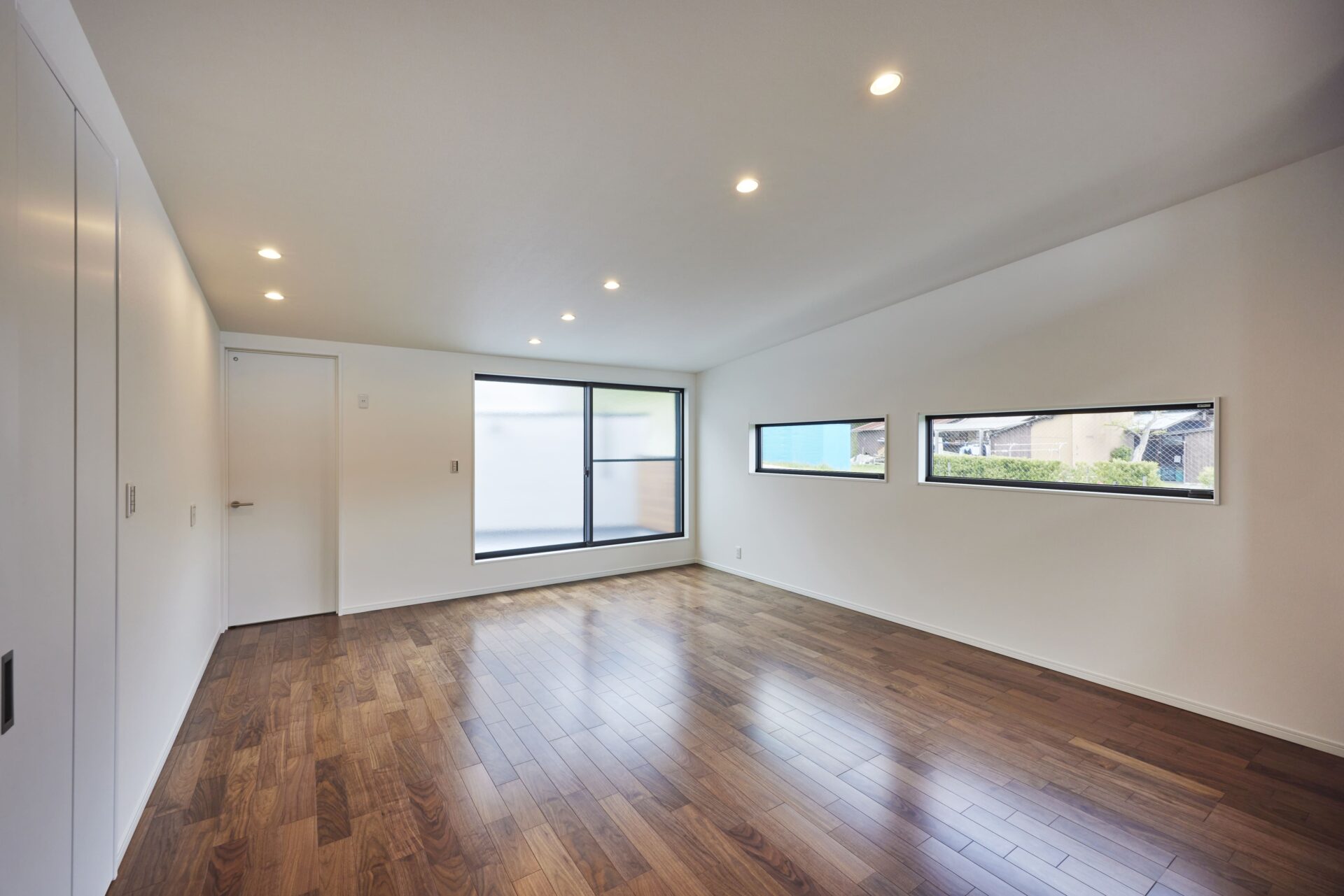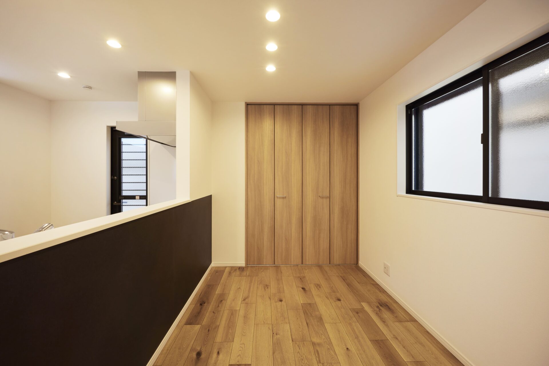 桁落ちは、居室として間取りを配置。デザイン等を工夫することで、圧迫感を感じさせない仕上げになりました。
