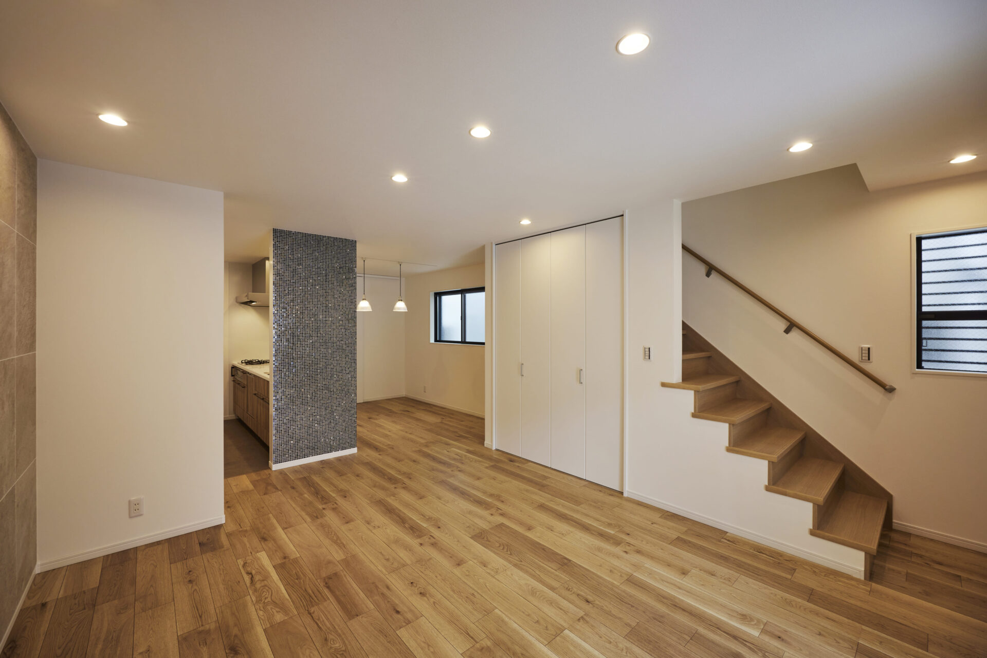 個室へ上がるには、必ずLDKを通る設計は、私たちの拘りです。