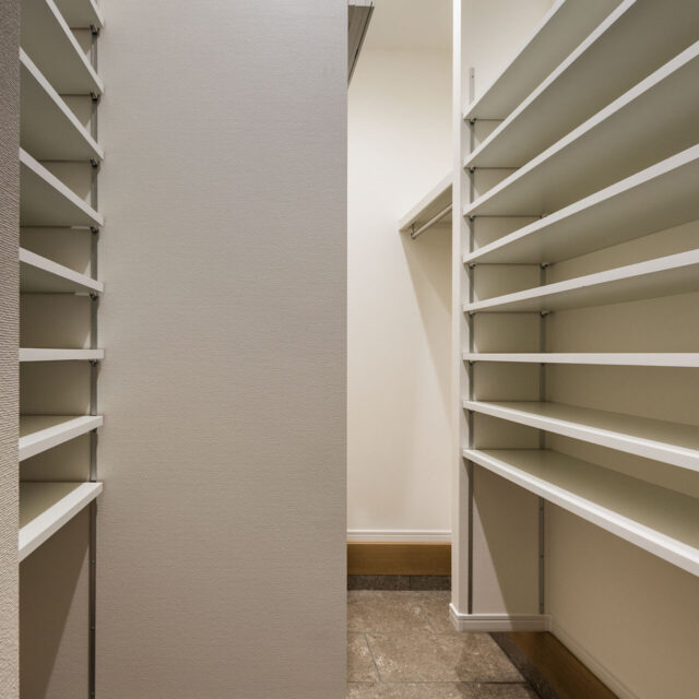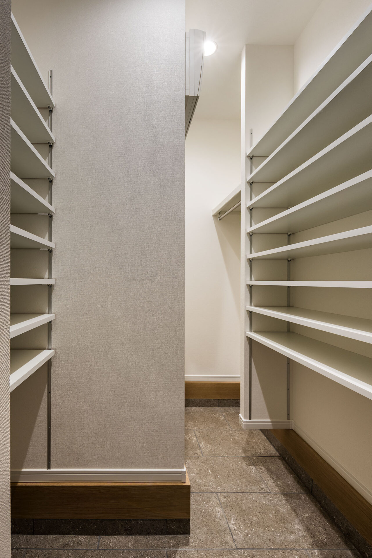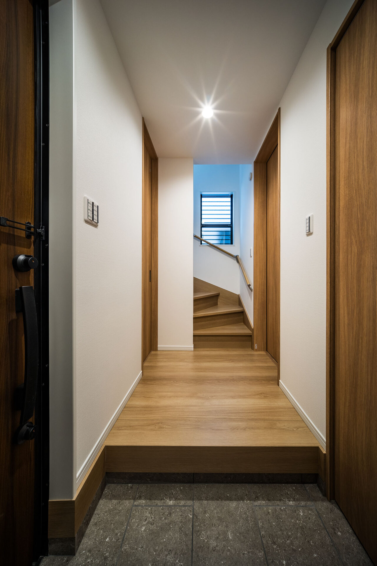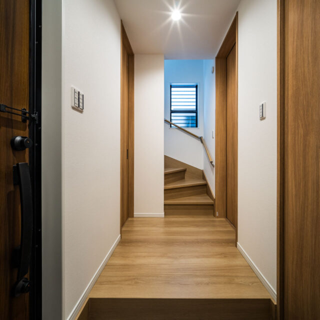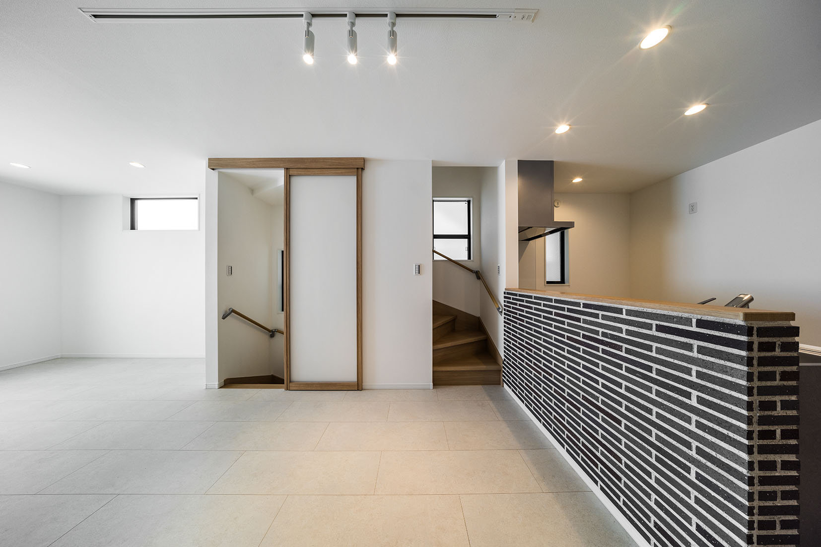 水廻りは、LDKから直接出入りすることで通路を減らし、間口をそのままLDKに使えるようにした。