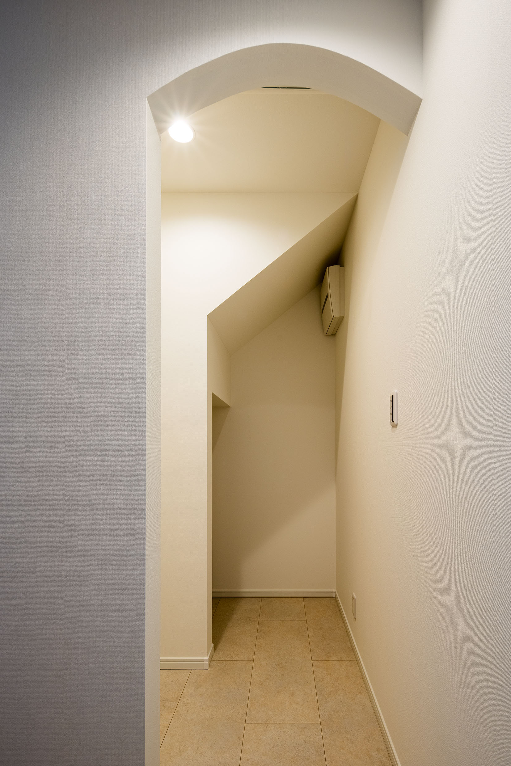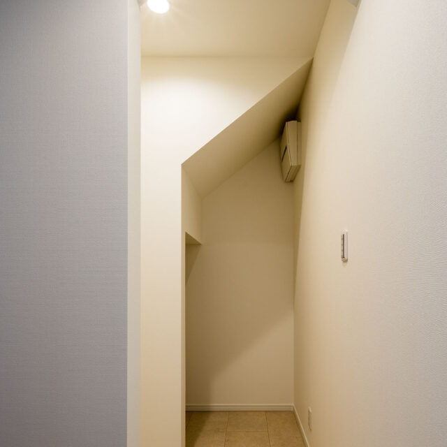 LDKに面する1階のリビング収納は階段下を活用し、広さを確保。