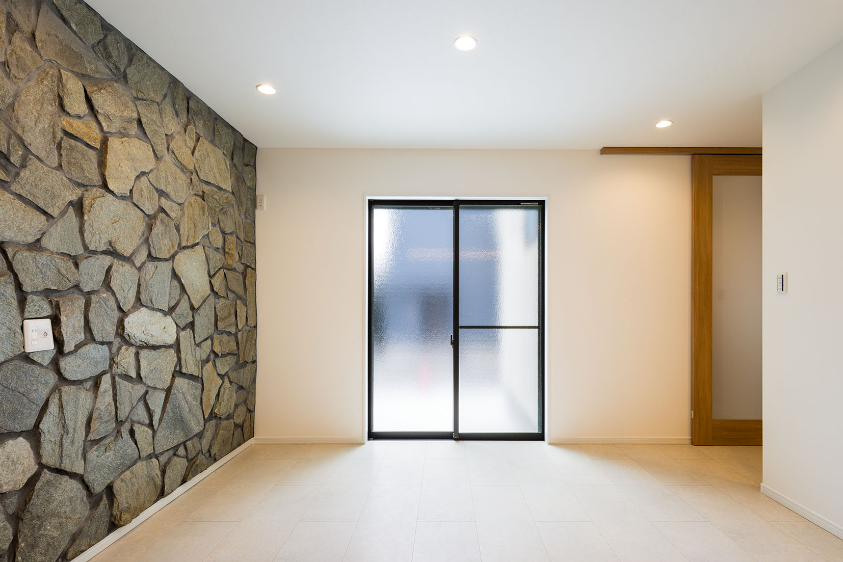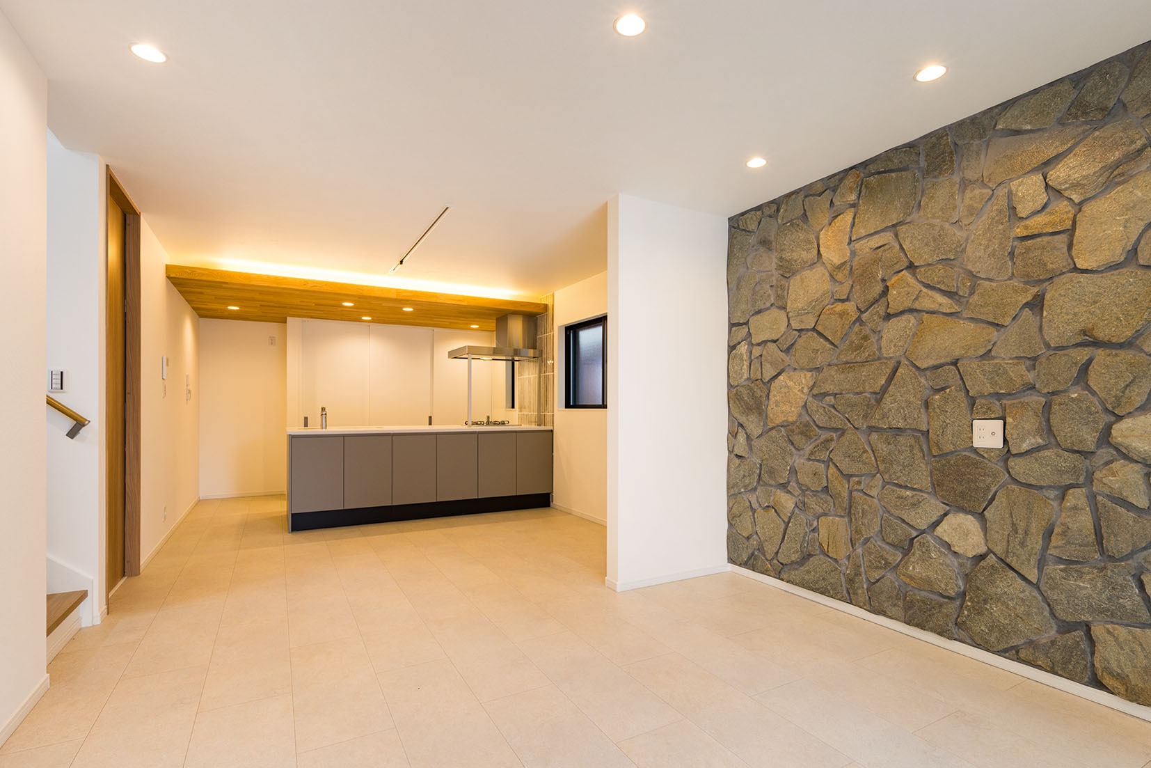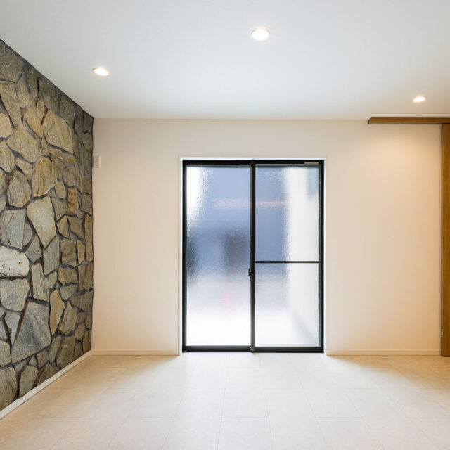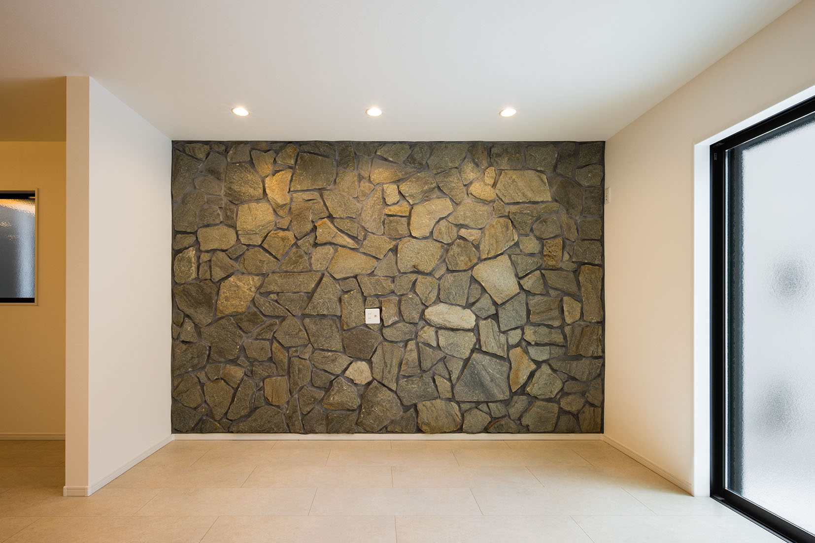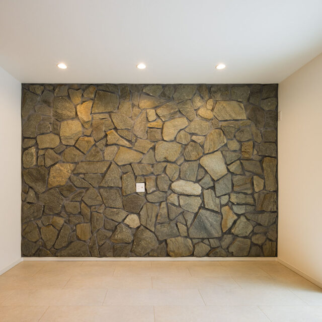 重さのある天然石を壁にはり重厚感を出しました。