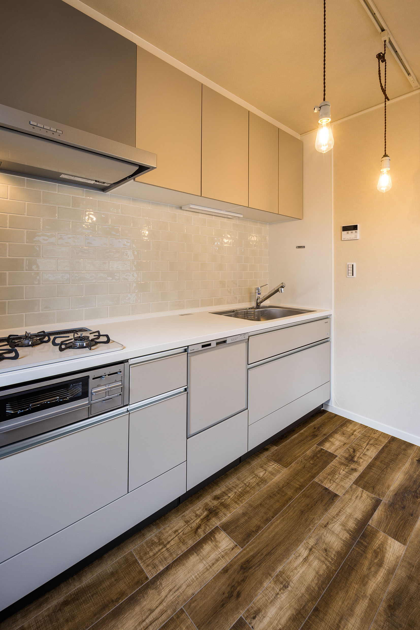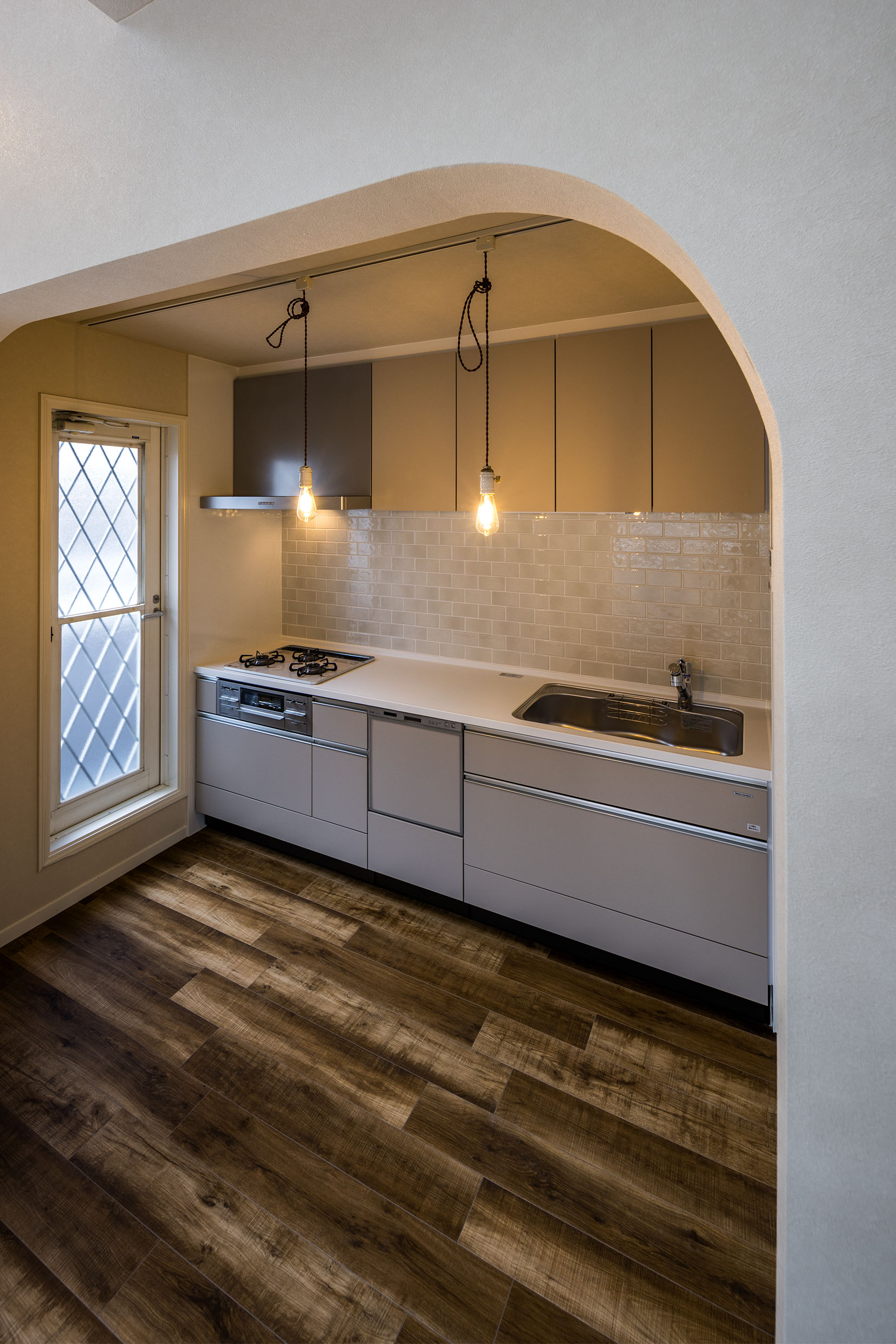 そこで、扉の一部を白に変更し、床はナチュラル感のある床材へ。