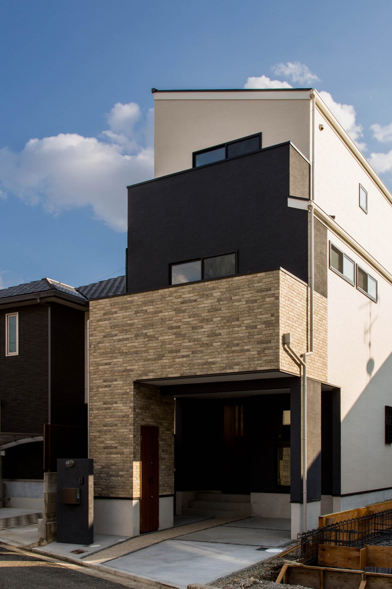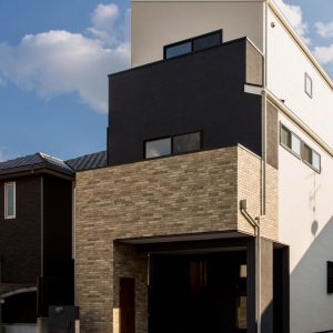 もともと建っていた建物が隣家との連棟物件。それを市役所へ相談したところ、狭小地ということも含めて単独で十分な建物を建てるのは困難であり、市条例の緩和措置が適合できると判断される。隣地との民法同意を条件に、市条例で定める隣地境界からの外壁後退距離を縮めても良いとの返答を得る。隣地に交渉し同意をいただくことで、通常より35cm間口を広げることが可能になった。