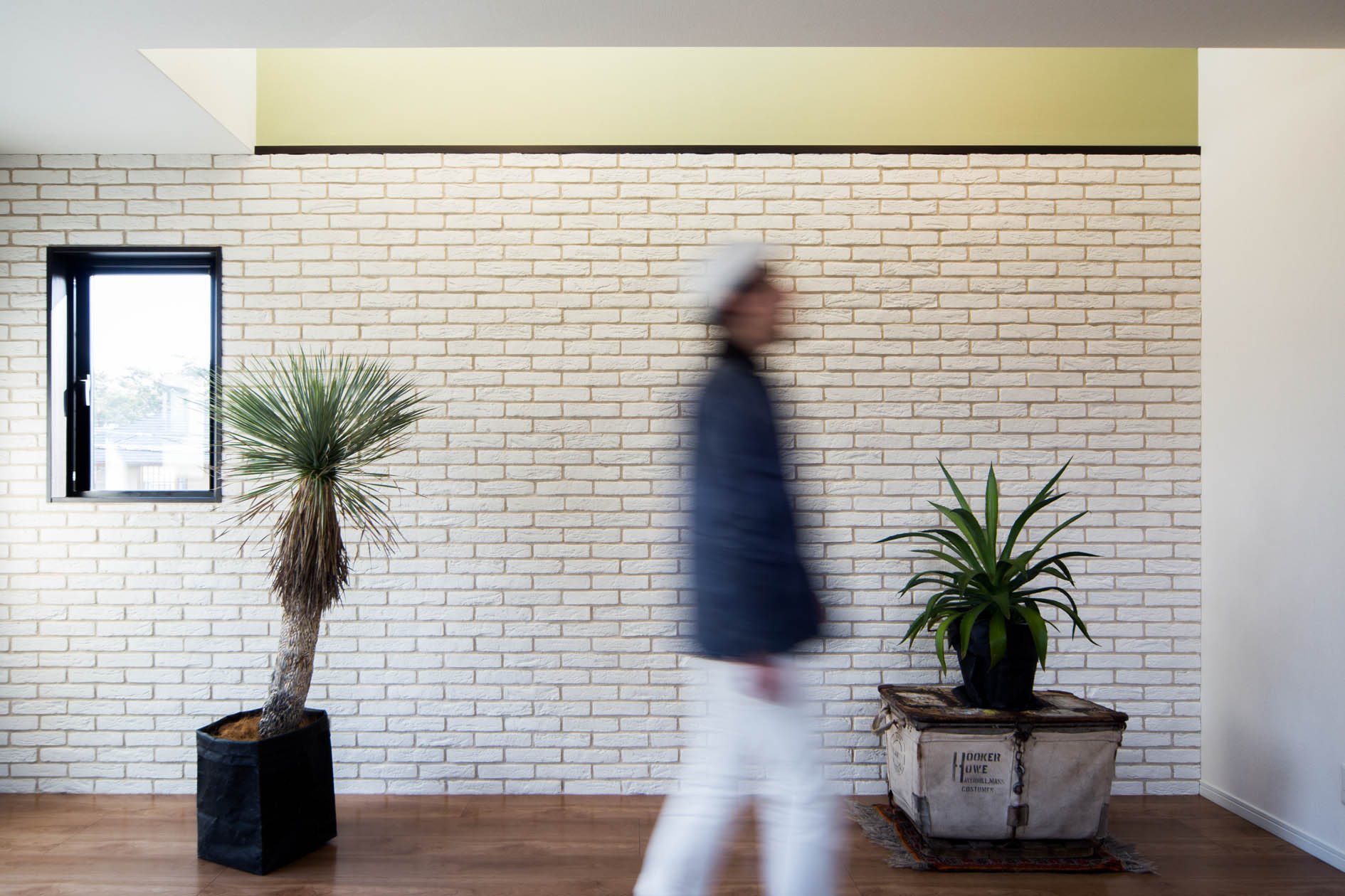 北向きの窓は暗いと思われがちだが、直射日光が入らないだけで優しい光が入る。そのため、リビングの大きな窓は道路面である北向きに設置。更に、隣地の建物の無い東面の一部に小さい吹抜けを設置することで、上部より間接的に光を取り入れるよう設計した。