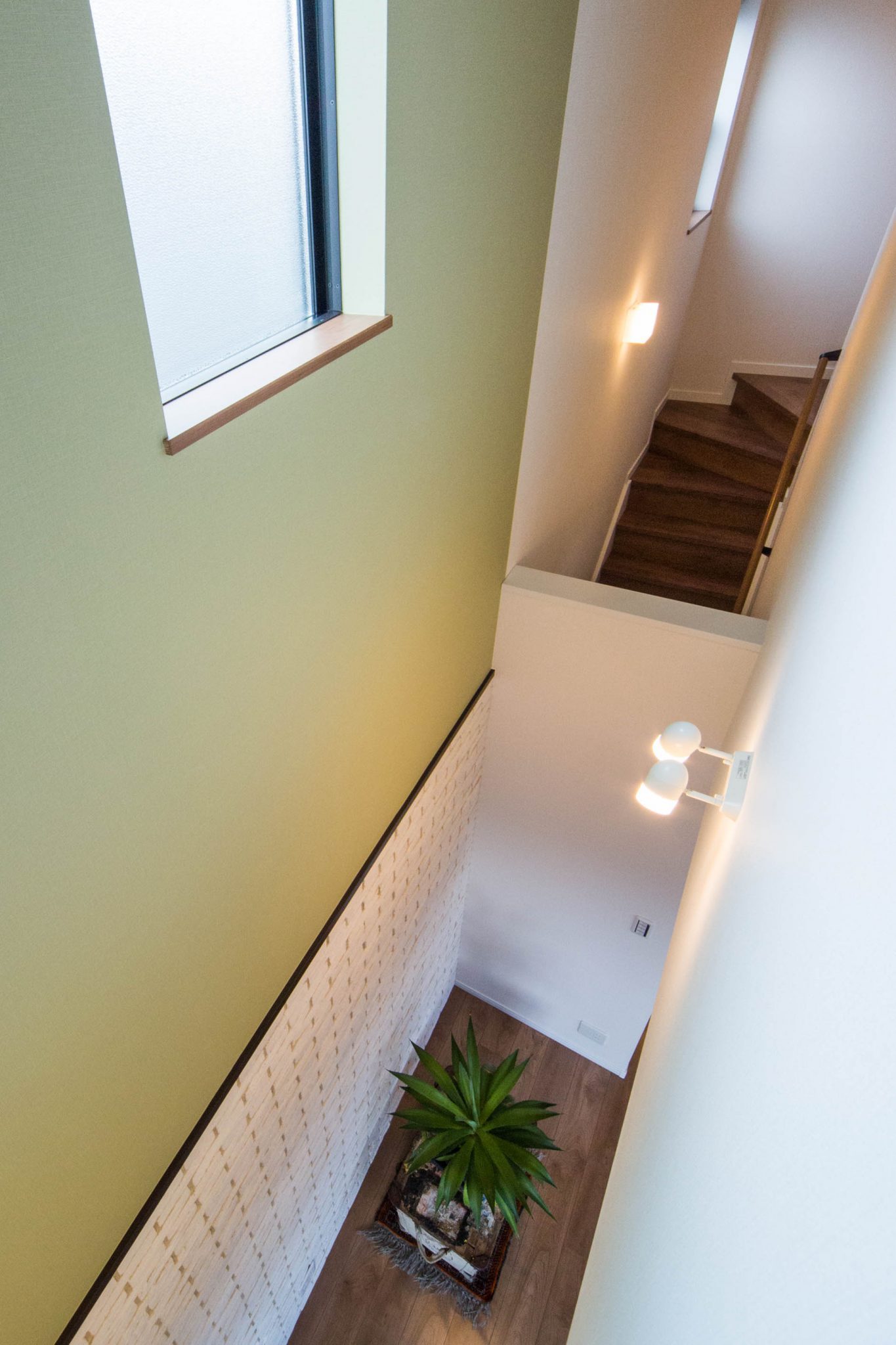 北に面した土地というデメリットは、一部に吹抜けを設置することで解消しました。