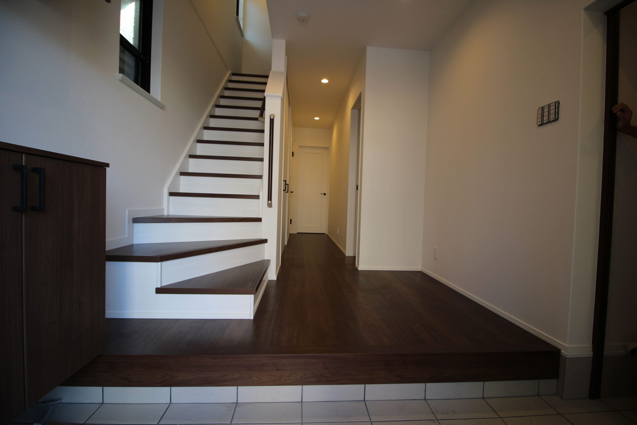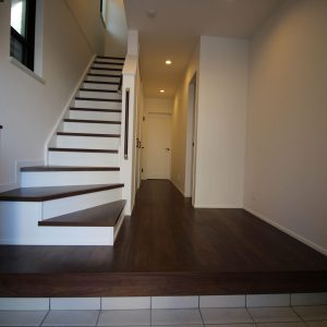 通常よりも広く取った玄関ホールや廊下・階段は、間口を感じさせない広々とした空間を演出することができました。
