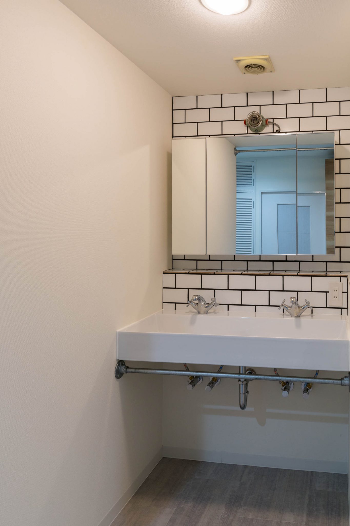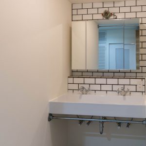 これにより、狭くなった洗面脱衣室から洗濯機置き場を移動し、使いやすい洗面台とした。