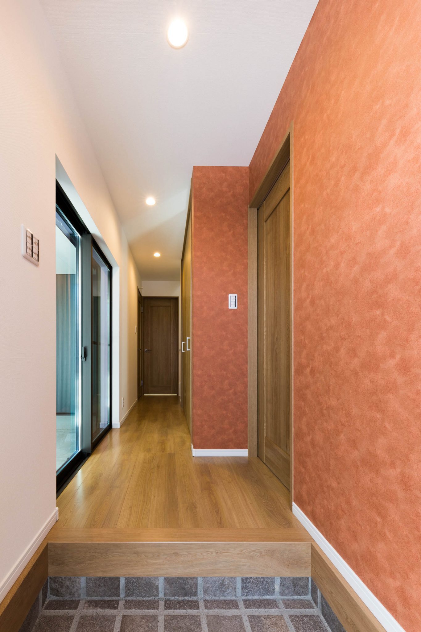 玄関ホールが狭くなりすぎないよう、玄関収納の位置を工夫した。