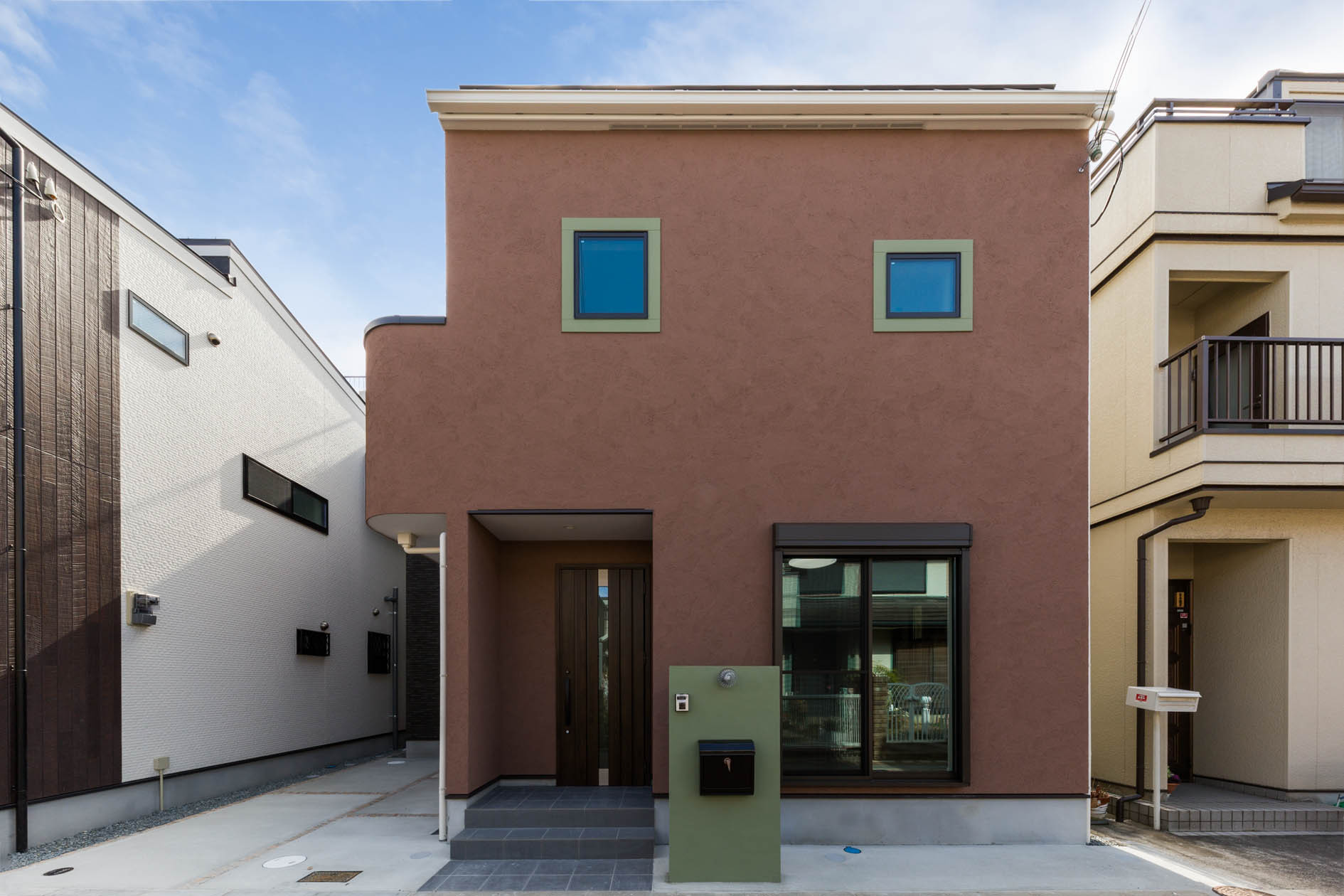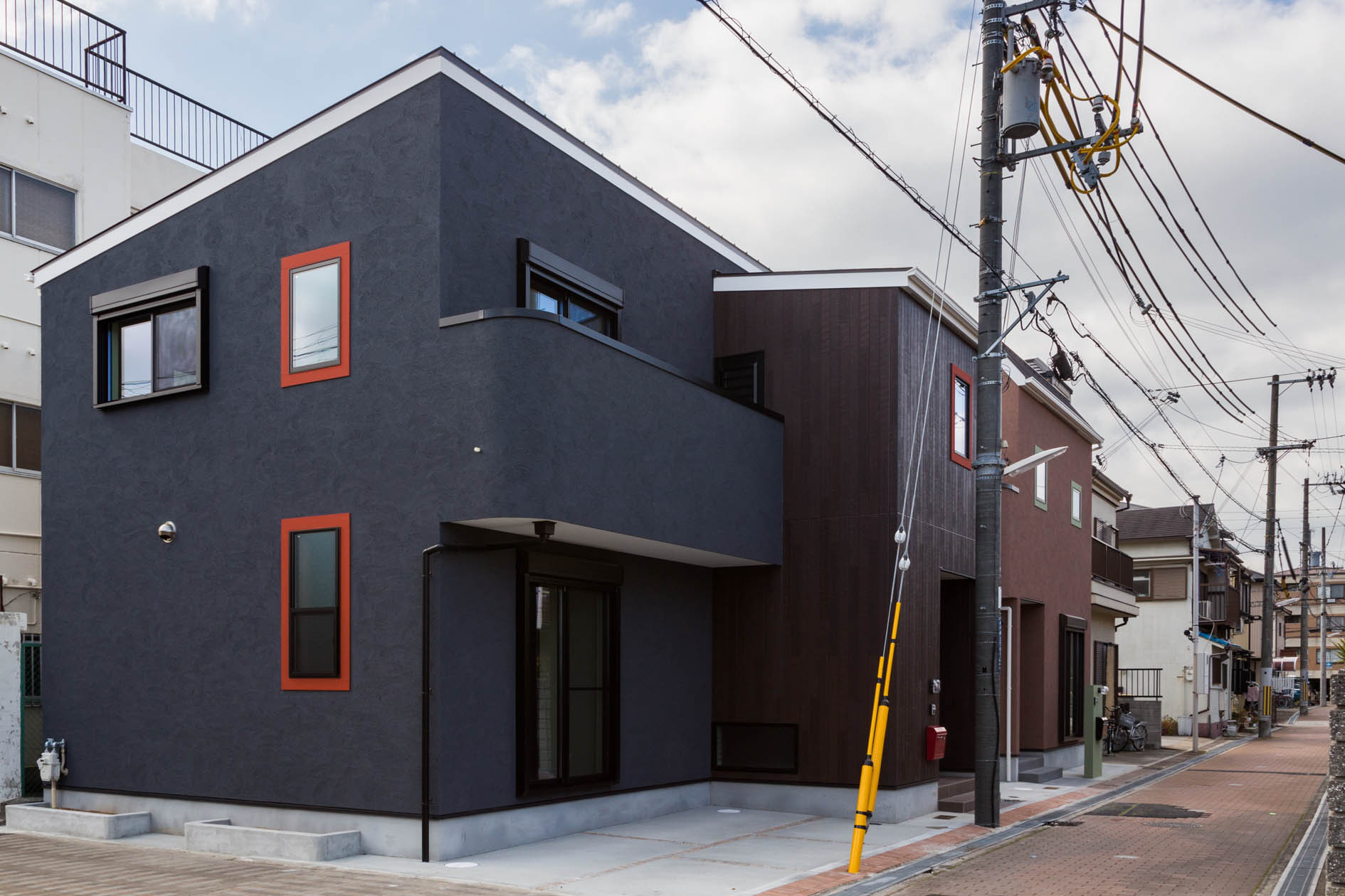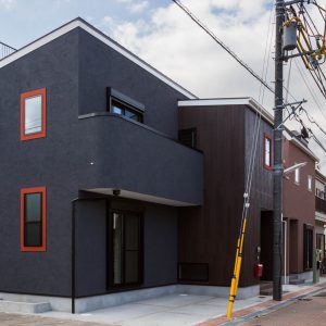 角地緩和を利用し、建蔽率を10パーセント増やし、効率よく間取りを取れるようにした。(A号地)