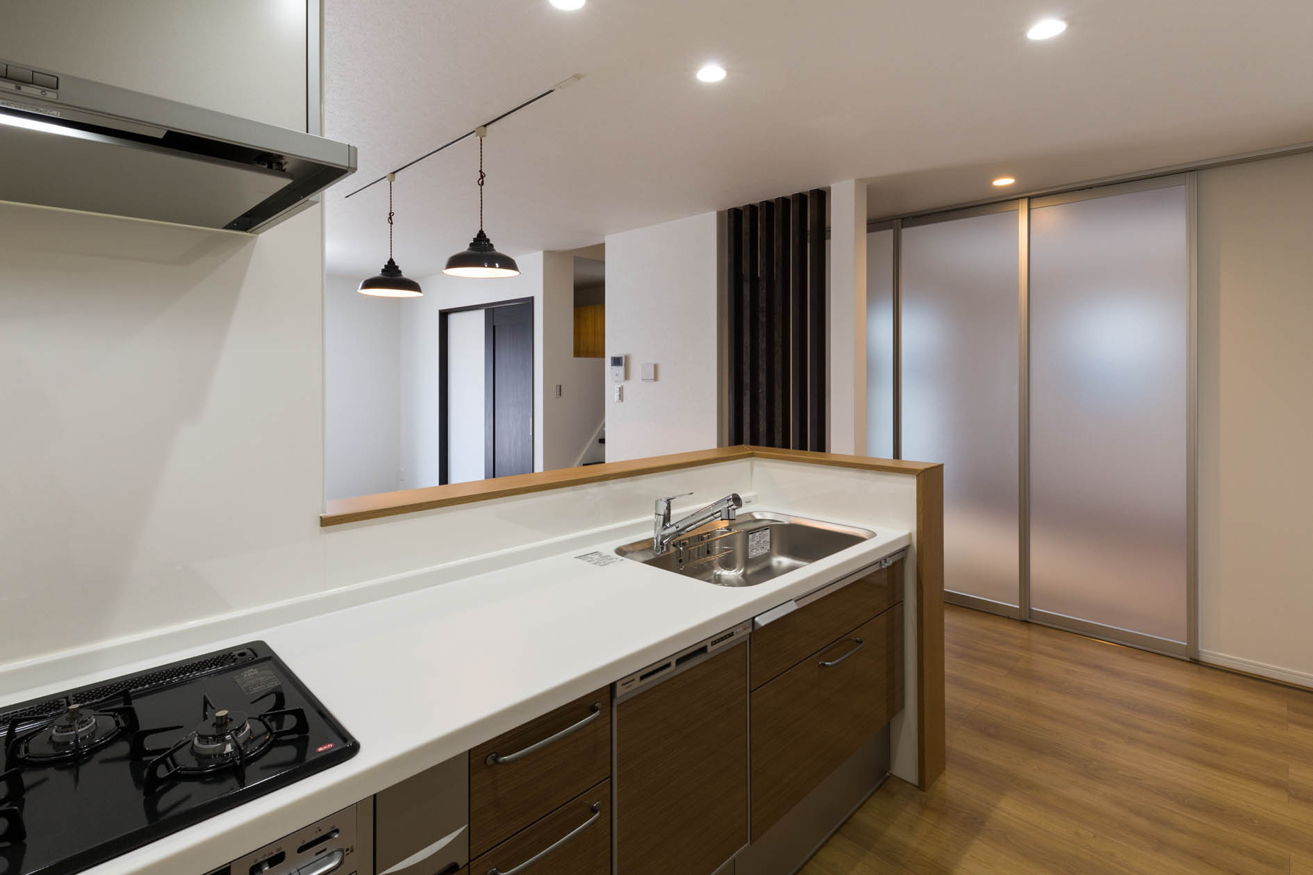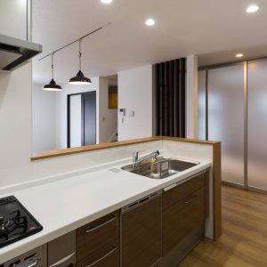 最小限の共有スペースは狭く感じたり、使い勝手が悪くならないように工夫した。