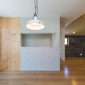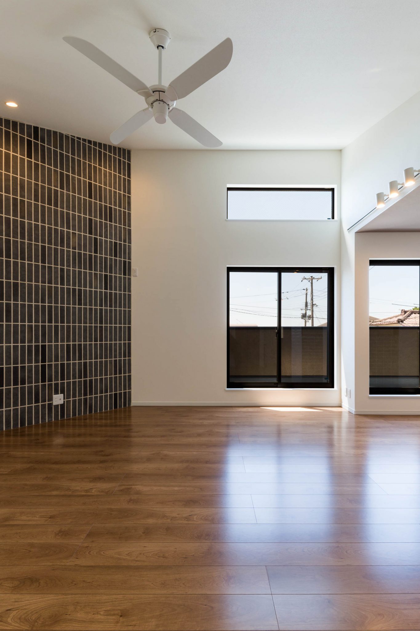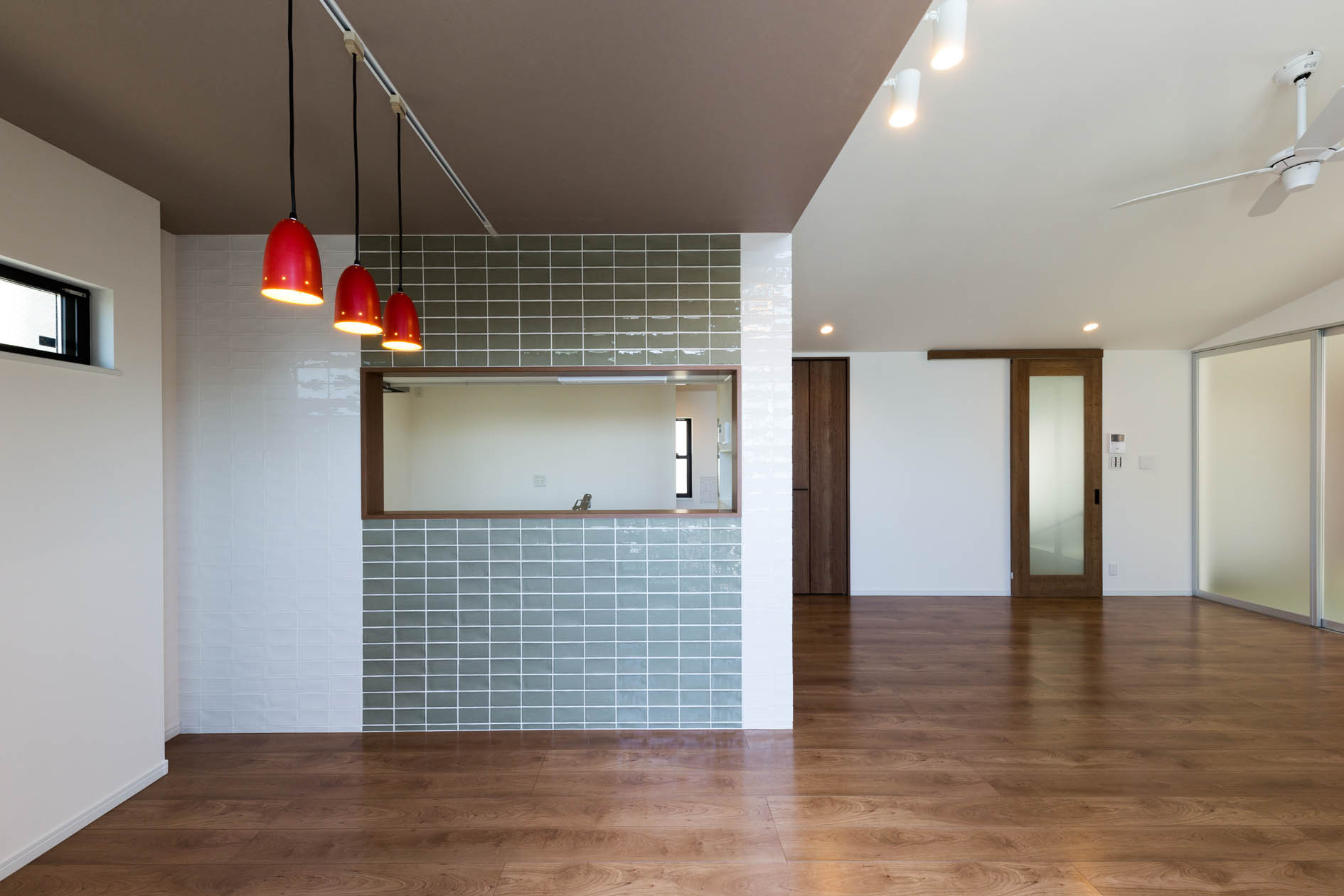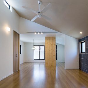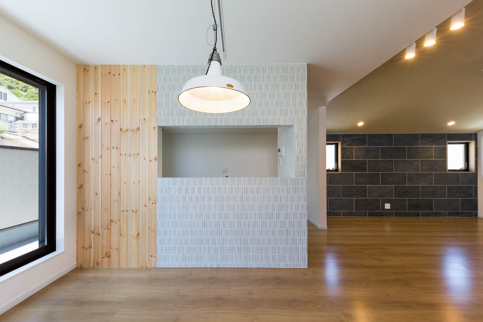 2階のLDKには勾配天井を造り、桁落ちする部分も含めてデザインした。