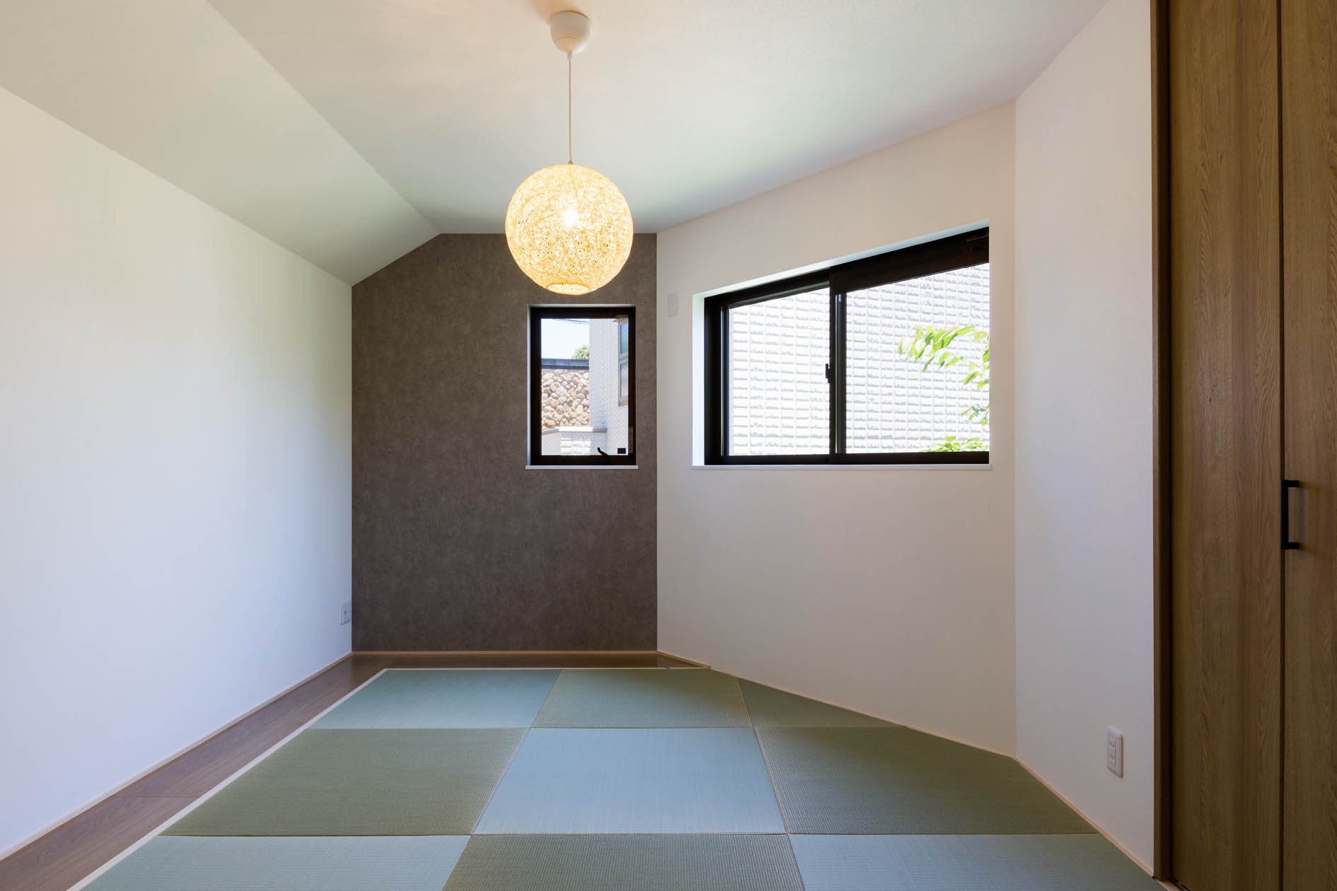 斜めの壁ができる部分は、収納にしたりして、できるだけ部屋を正形になるように設計した。