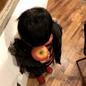 去年に引き続き、りんごを持って遊びに来てくださったお客様。